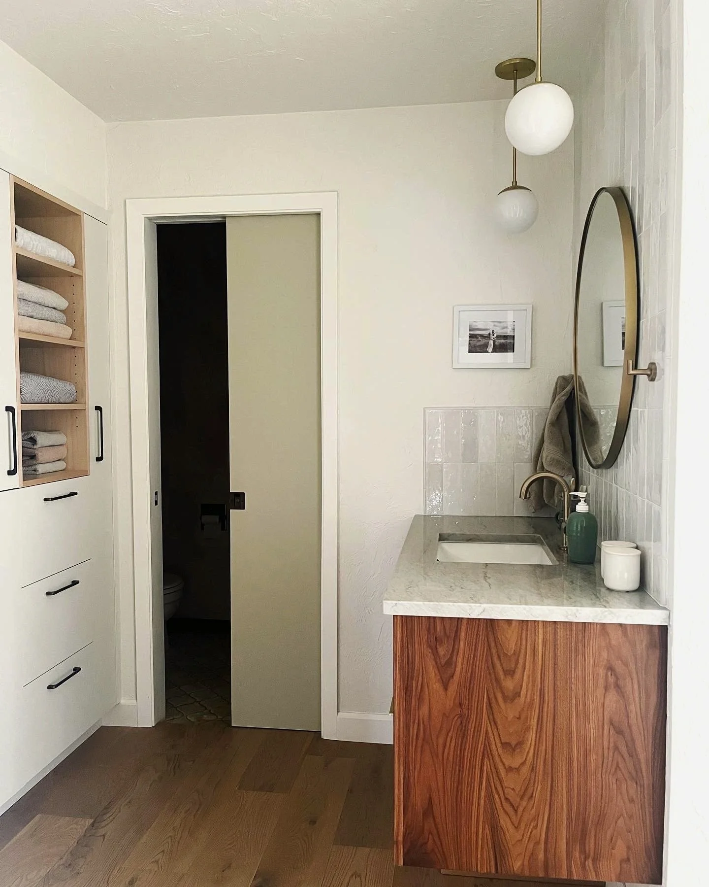 This project was all about optimizing living space for a family of 3 and a dog. The condo came with a good layout, but lacked storage, and required a full overhaul of flooring, bathrooms, and the kitchen.